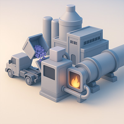 Uso de residuos como materia prima del clinker en la producción de cemento.